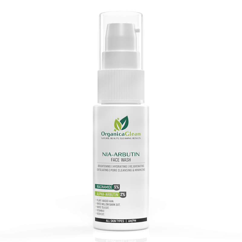 The OrganicaGleam Nia-Arbutin Face Wash was developed in response to common customer concerns such as hyperpigmentation, clogged pores, dull skin, and harsh products that strip the skin’s natural oils. Our Nia-Arbutin Face Wash delivers a gentle yet effective cleanse, leaving skin feeling refreshed, revitalized, and healthy.